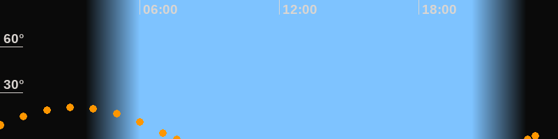 Aufgang22:40 Uhr im Südosten (αAz = 119.6°)