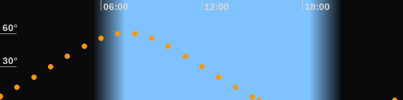 Aufgang23:29 Uhr im Nordosten (αAz = 54.2°)