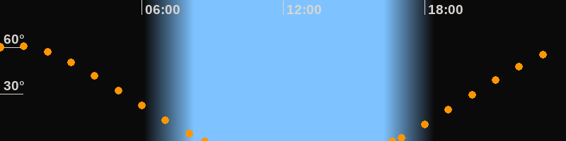 Höchster Stand (Kulmination)00:37 Uhr (h = 61°)
