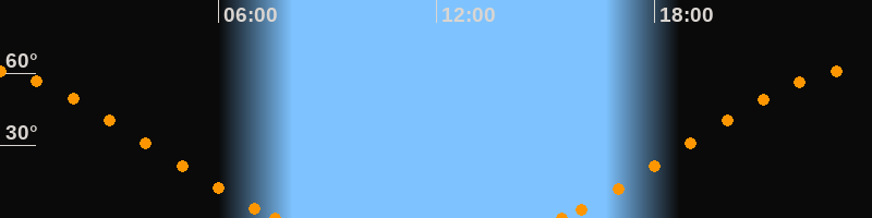 Höchster Stand (Kulmination)23:28 Uhr (h = 61.2°)
