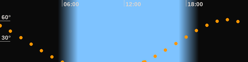 Höchster Stand (Kulmination)21:54 Uhr (h = 61.5°)