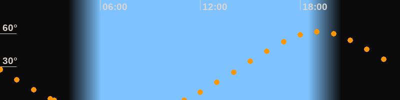 Höchster Stand (Kulmination)19:06 Uhr (h = 61.7°)