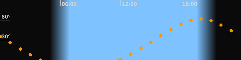 Höchster Stand (Kulmination)19:54 Uhr (h = 61.7°)