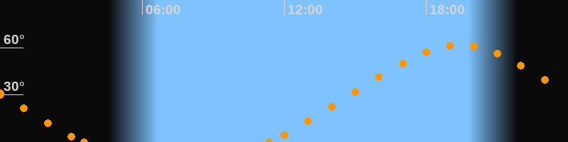 Höchster Stand (Kulmination)19:24 Uhr (h = 61.7°)