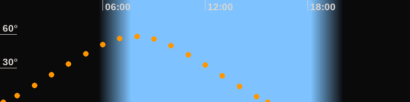 Aufgang00:10 Uhr im Nordosten (αAz = 58.2°)