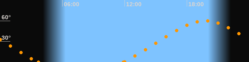 Höchster Stand (Kulmination)19:45 Uhr (h = 59.9°)