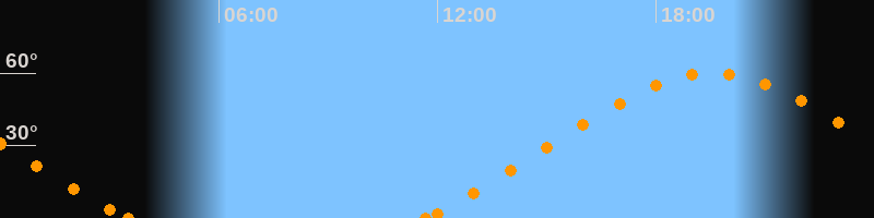 Höchster Stand (Kulmination)19:33 Uhr (h = 59.9°)