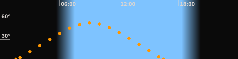 Höchster Stand (Kulmination)09:04 Uhr (h = 55.3°)