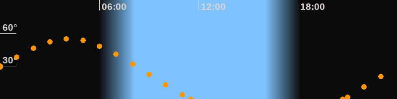 Höchster Stand (Kulmination)04:08 Uhr (h = 54.8°)