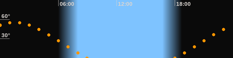 Aufgang18:00 Uhr im Nordosten (αAz = 62.9°)