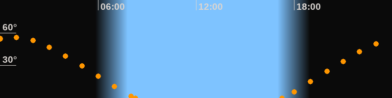 Höchster Stand (Kulmination)00:44 Uhr (h = 55.9°)