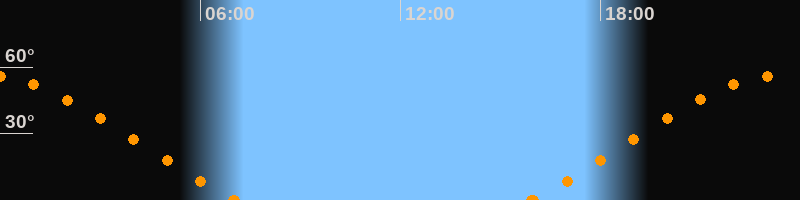 Höchster Stand (Kulmination)23:27 Uhr (h = 56.4°)