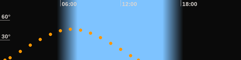 Höchster Stand (Kulmination)07:09 Uhr (h = 46.2°)