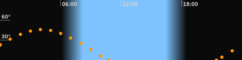 Höchster Stand (Kulmination)04:07 Uhr (h = 46.1°)
