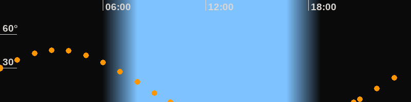 Höchster Stand (Kulmination)03:19 Uhr (h = 46.3°)