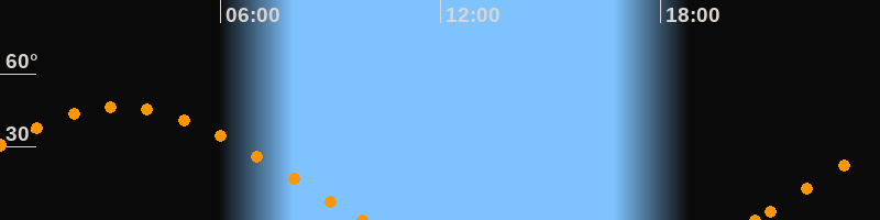 Höchster Stand (Kulmination)03:15 Uhr (h = 46.3°)