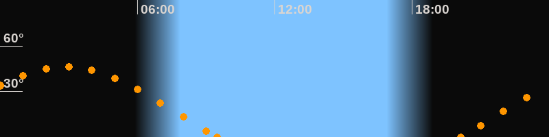 Höchster Stand (Kulmination)02:50 Uhr (h = 46.4°)
