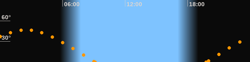 Höchster Stand (Kulmination)02:29 Uhr (h = 46.6°)