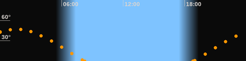 Höchster Stand (Kulmination)01:34 Uhr (h = 47°)