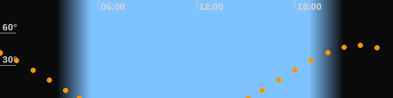 Höchster Stand (Kulmination)21:57 Uhr (h = 48.4°)