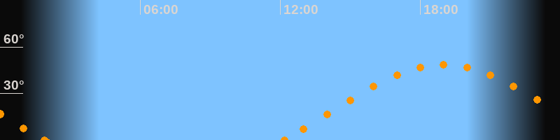 Höchster Stand (Kulmination)19:00 Uhr (h = 48.7°)