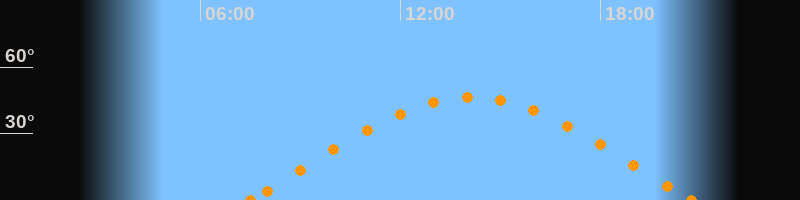 Aufgang07:30 Uhr im Osten (αAz = 78.2°)
