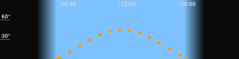 Höchster Stand (Kulmination)12:12 Uhr (h = 44.7°)