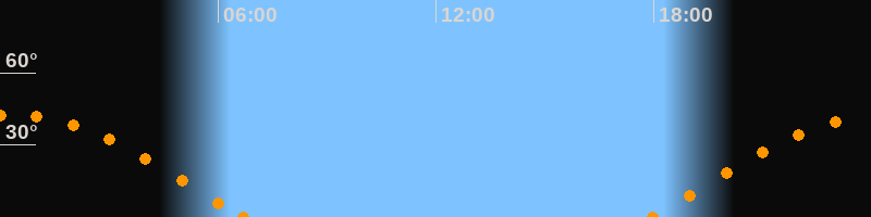 Höchster Stand (Kulmination)00:18 Uhr (h = 42.7°)