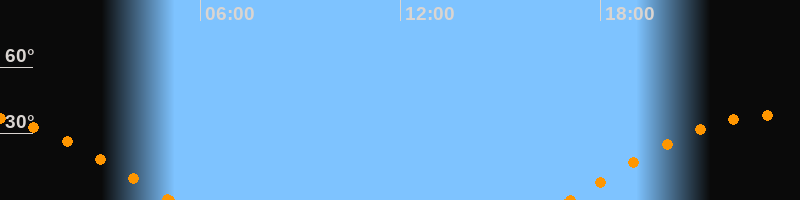 Höchster Stand (Kulmination)23:03 Uhr (h = 38.3°)