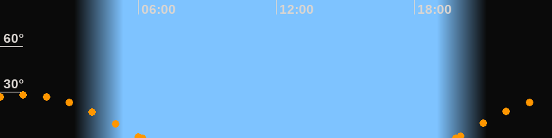 Höchster Stand (Kulmination)01:01 Uhr (h = 28.4°)