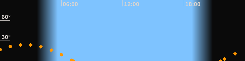 Aufgang21:34 Uhr im Südosten (αAz = 113.4°)