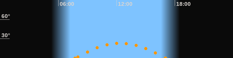 Höchster Stand (Kulmination)12:23 Uhr (h = 23°)