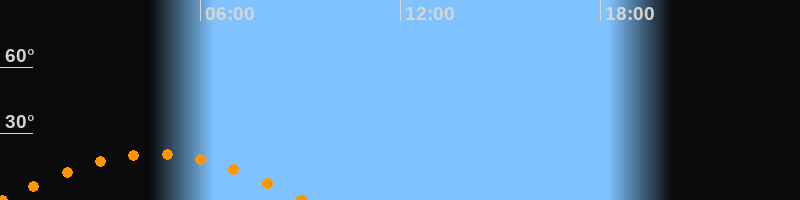 Aufgang00:04 Uhr im Südosten (αAz = 119°)