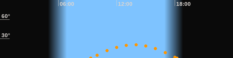 Untergang18:13 Uhr im Südwesten (αAz = 240.6°)