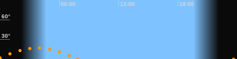 Aufgang23:39 Uhr im Südosten (αAz = 126°)