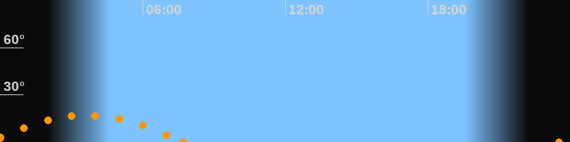 Aufgang23:31 Uhr im Südosten (αAz = 126°)