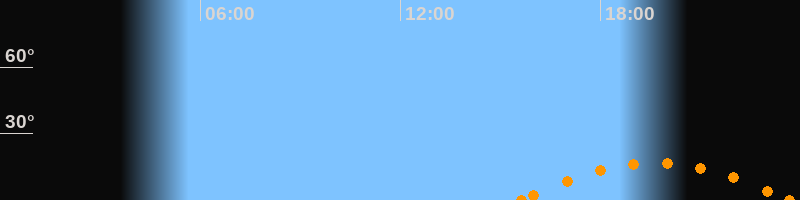 Untergang23:39 Uhr im Südwesten (αAz = 233.4°)