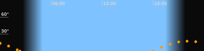 Aufgang18:00 Uhr im Südosten (αAz = 124.6°)