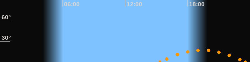 Untergang23:32 Uhr im Südwesten (αAz = 235°)