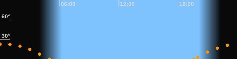 Höchster Stand (Kulmination)00:16 Uhr (h = 23.3°)