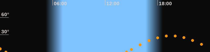 Höchster Stand (Kulmination)19:33 Uhr (h = 28.2°)