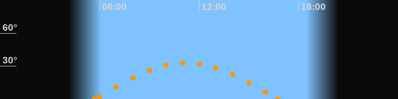 Höchster Stand (Kulmination)11:13 Uhr (h = 33°)