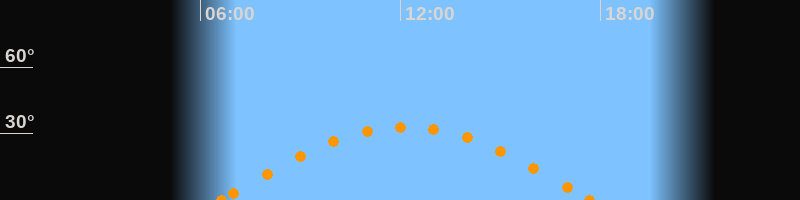 Höchster Stand (Kulmination)12:09 Uhr (h = 33°)