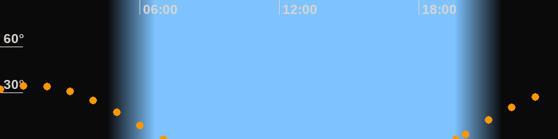 Höchster Stand (Kulmination)01:16 Uhr (h = 34.9°)