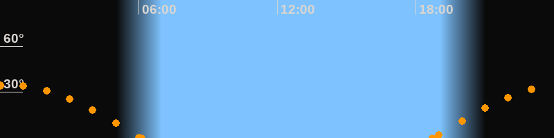 Höchster Stand (Kulmination)00:23 Uhr (h = 34.7°)