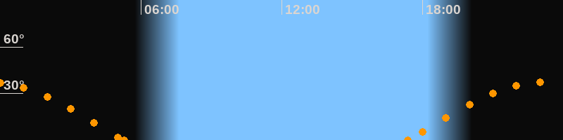 Höchster Stand (Kulmination)23:17 Uhr (h = 37.6°)