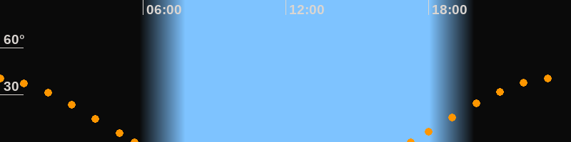 Höchster Stand (Kulmination)23:25 Uhr (h = 40.8°)