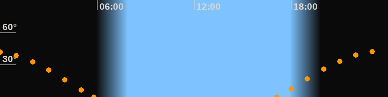 Höchster Stand (Kulmination)23:25 Uhr (h = 42.4°)