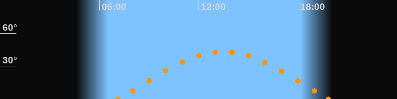 Höchster Stand (Kulmination)13:28 Uhr (h = 43.2°)