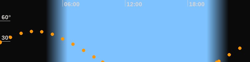 Höchster Stand (Kulmination)03:21 Uhr (h = 44.9°)